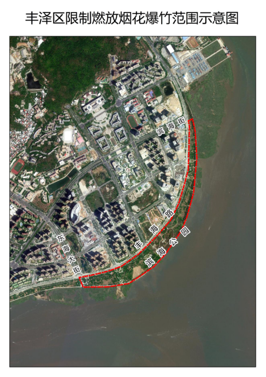 限制范围:丰海路滨海公园(东海大街至滨海街段,详见附件1);允许燃放时间为:除夕、正月初一全天,正月初八22时至正月初九10时、正月十五6时至22时;允许燃放烟花爆竹的品种、规格:200响(含200响)以下爆竹及燃放高度不高于3米的低硫无硫环保小型烟花。