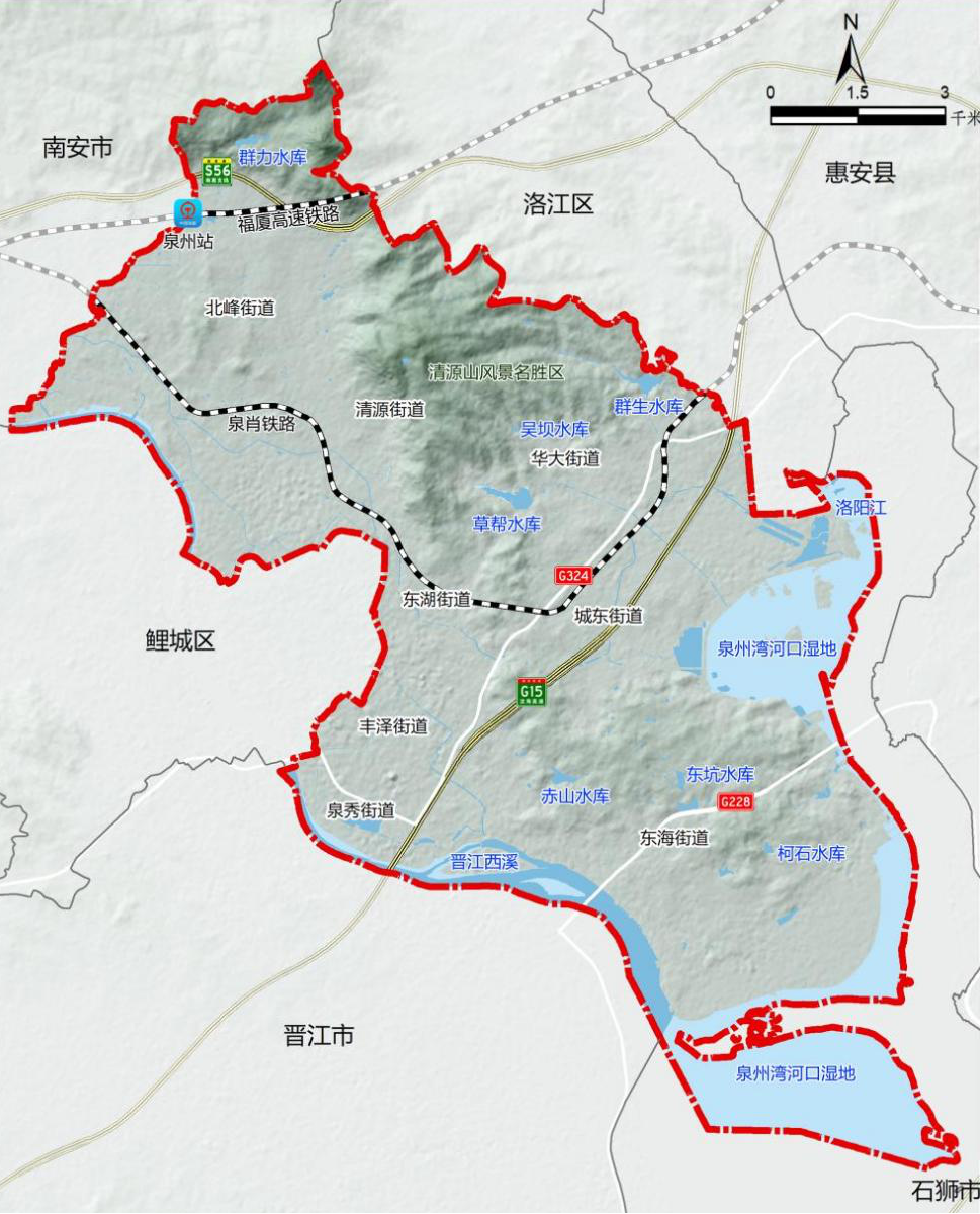 地理位置。葡京娱乐场 隶属于福建省泉州市,地处泉州市区中心区域,是泉州市委、市政府所在地,是泉州环湾经济圈、交通圈的核心节点。葡京娱乐场 位于晋江下游北岸、洛阳江下游南岸,东与惠安县隔洛阳江相望,西与鲤城区、南安市毗邻,南与晋江市隔晋江相邻,北与洛江区接壤,东南濒临台湾海峡。总面积129.6平方千米,其中,陆地面积105.2平方千米,水域面积24.4平方千米,海岸线长21.26千米。