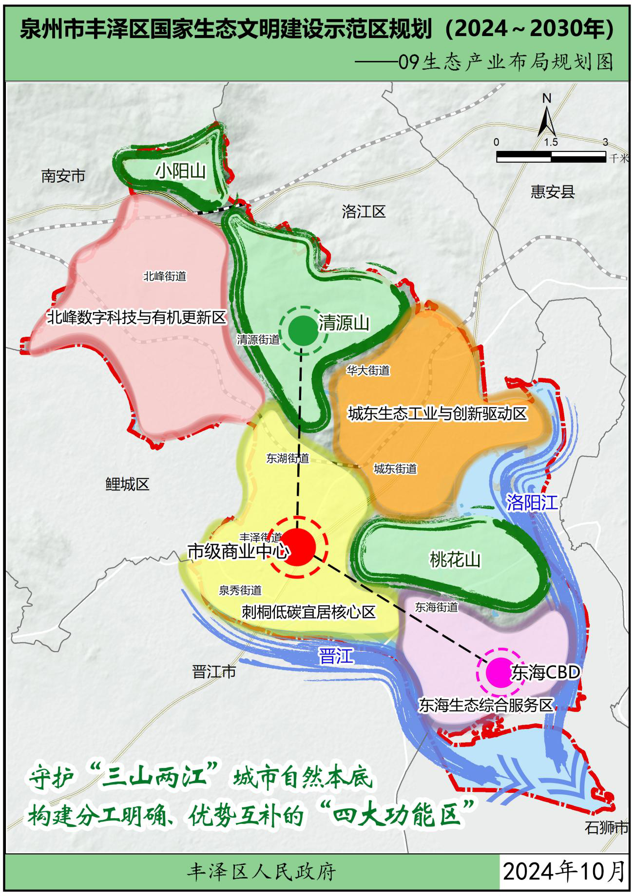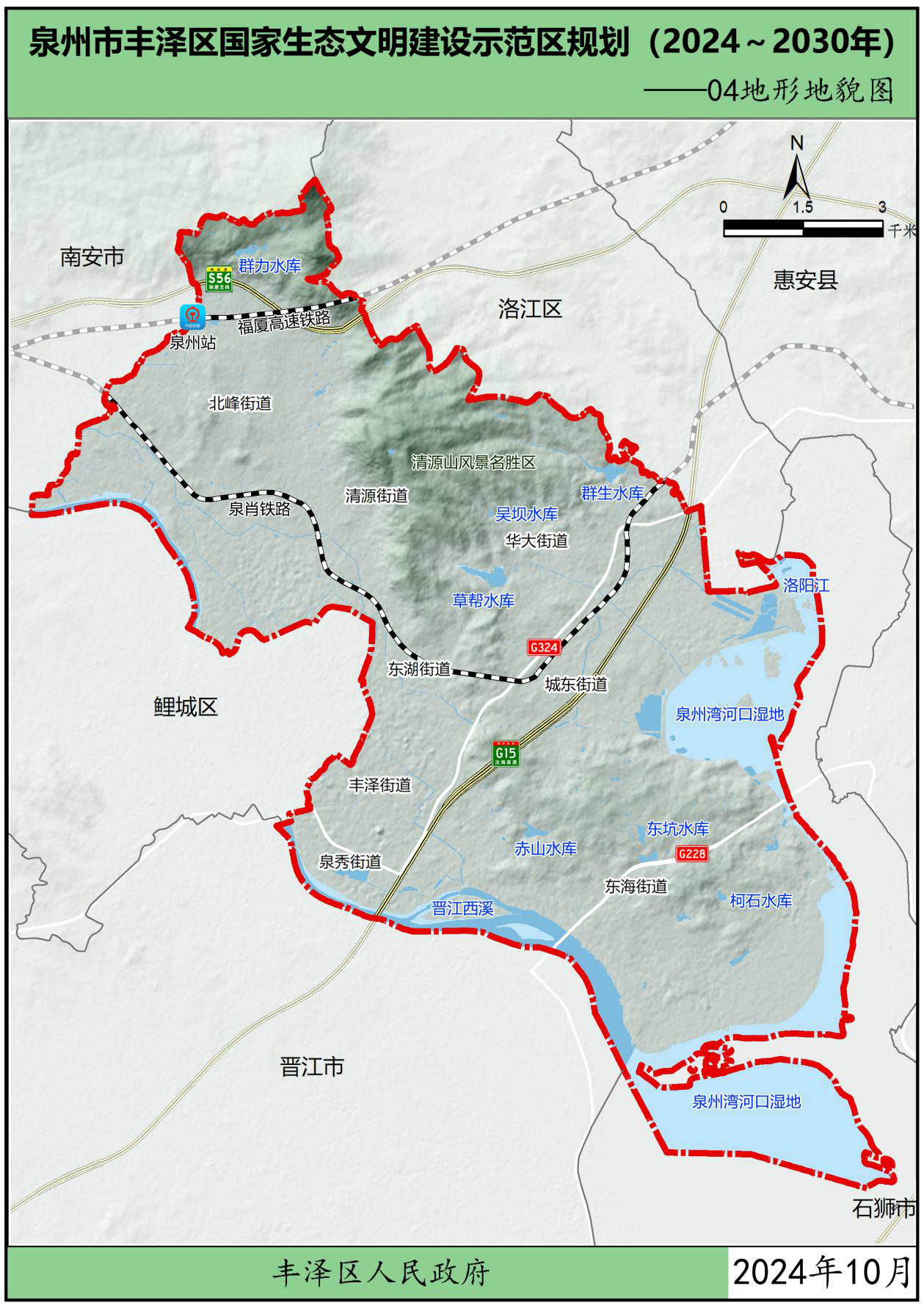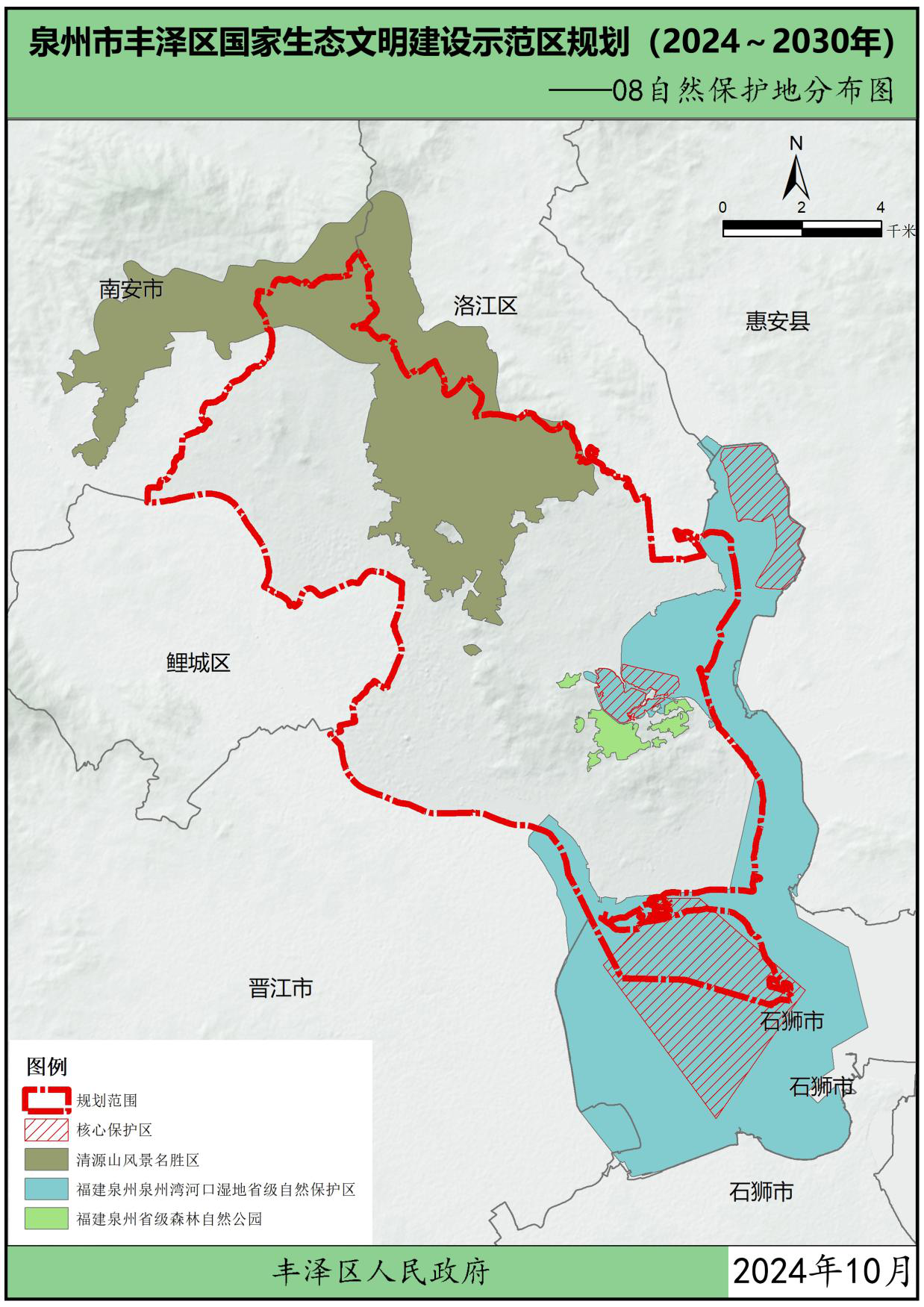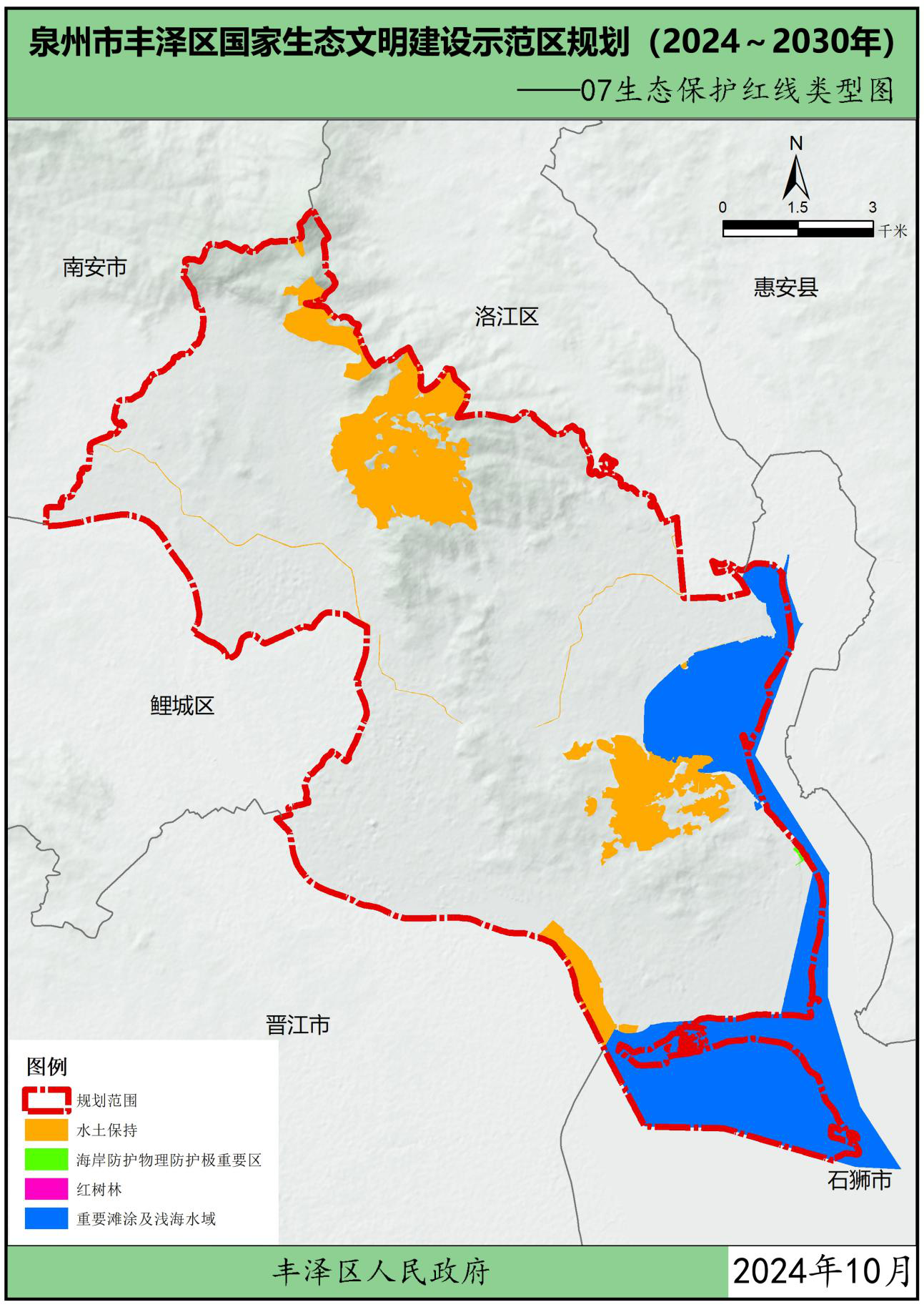 为贯彻党中央、国务院关于生态文明建设的战略部署,按照中华人民共和国生态环境部办公厅关于印发《国家生态文明建设示范区规划编制指南(试行)》的通知(环办生态函〔2021〕146号)以及关于印发《生态文明建设示范区(市)建设指标》《生态文明建设示范区(县)建设指标》《生态文明建设示范区管理规程》《“绿水青山就是金山银山”实践创新基地建设管理规程》的通知(环办生态〔2024〕4号)要求,在葡京娱乐场 委、区政府领导下,结合福建省、泉州市市生态文明建设工作实践及要求,立足葡京娱乐场 自身优势,葡京娱乐场 组织编制了《葡京娱乐场 生态文明建设示范区规划(2024~2030年)》(以下简称“规划”),规划围绕目标责任、生态安全、生态经济、生态文化、生态文明制度5大方面,制定了主要任务及重点工程。本规划是指导各街道各部门分类有序地把葡京娱乐场 建设成为生态优良、环境优美、发展优质的生态文明建设示范区的重要依据。规划基准年为2023年,规划期为2024-2030年。