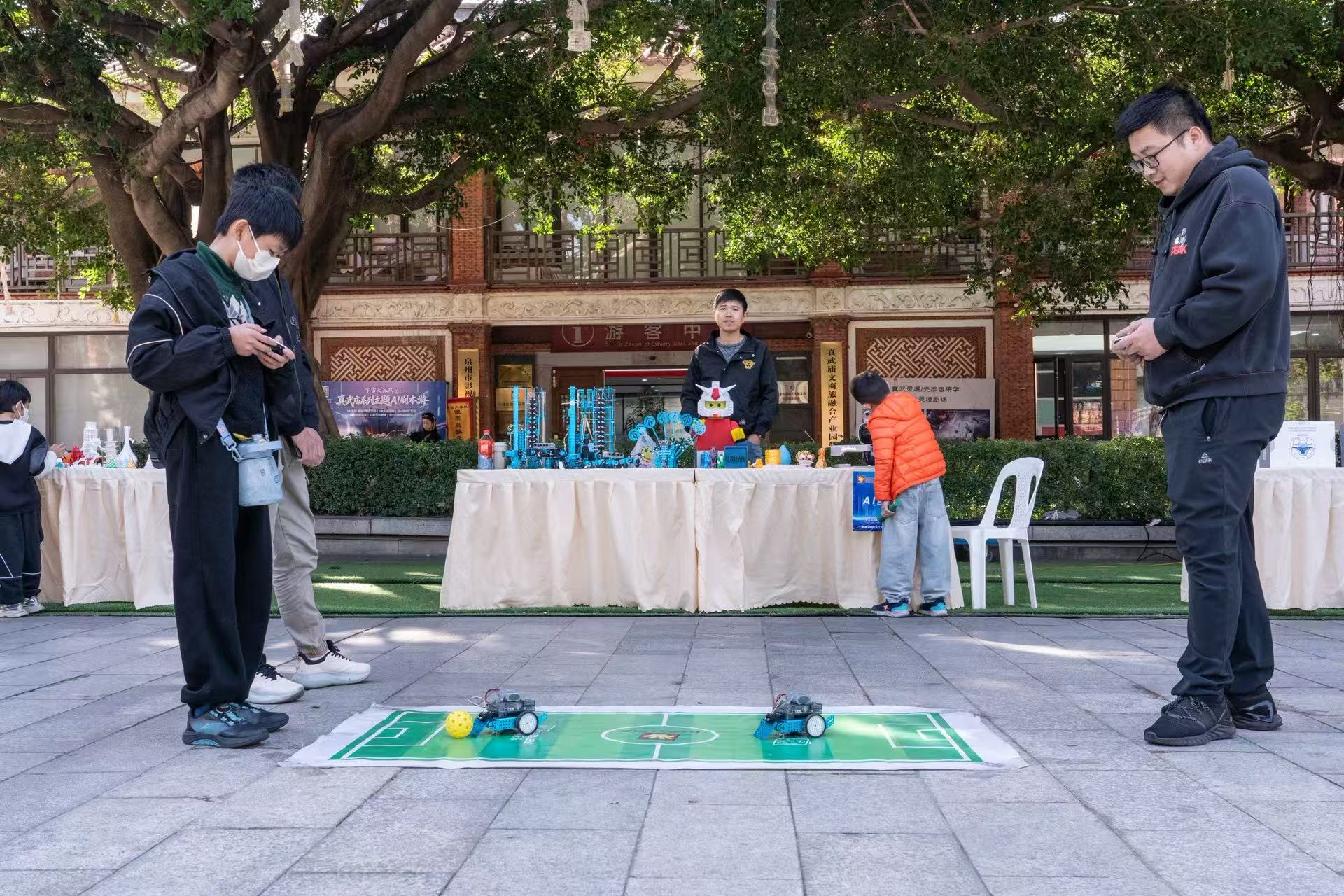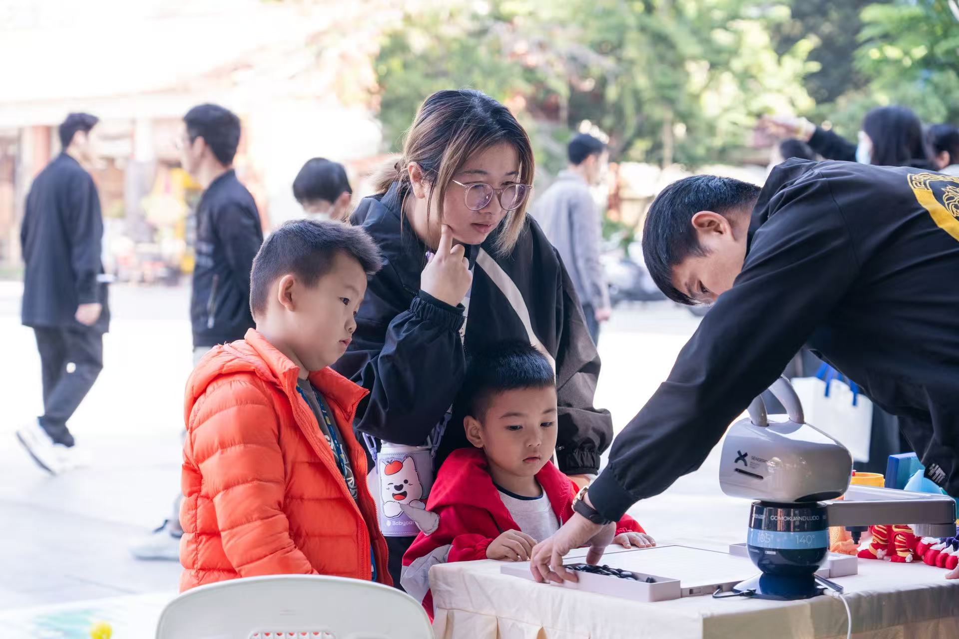 在科普互动区,居民们亲手操作、亲身体验无人机足球、无人机模型、AI围棋对弈、3D打印产品等科普互动装置。