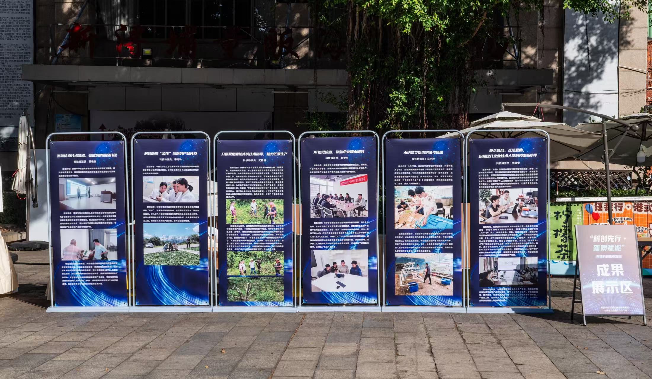 在成果展示区,集中展示6个科技特派员团队关于涵盖AI视觉检测、消防管控信息技术、茶系列产品开发、芒果采后回缩修剪技术、水培蔬菜系统以及校企合作项目等领域创新成果,为参加活动的企业人员搭建成果对接桥梁。
