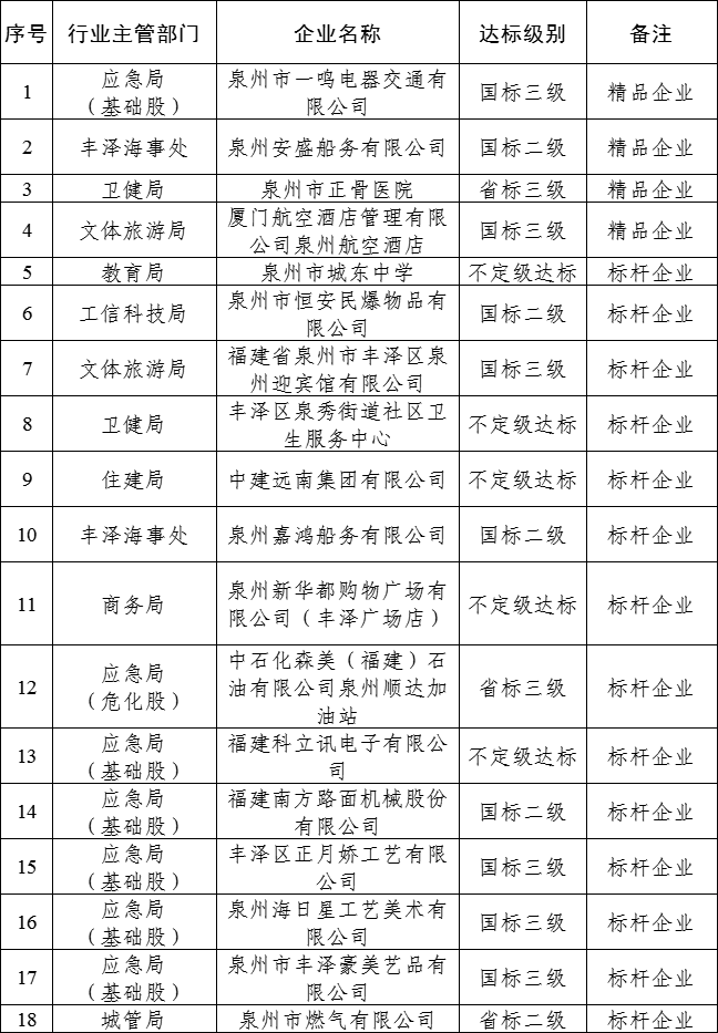 葡京娱乐场 2023年度“安全生产标准化精品(标杆)企业”名单