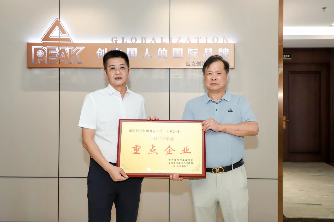 高金全一行首先来到匹克集团,实地参观企业品牌馆,与企业负责人座谈交流,了解国内市场销售、国际市场布局、匹克体育智能制造基地项目建设以及非公企业党建工作情况,共话体育用品产业发展新方向新趋势,现场协调解决企业关切问题,并向企业颁发了2025年度“重点企业”和2024年度“进出口贡献大户”牌匾。