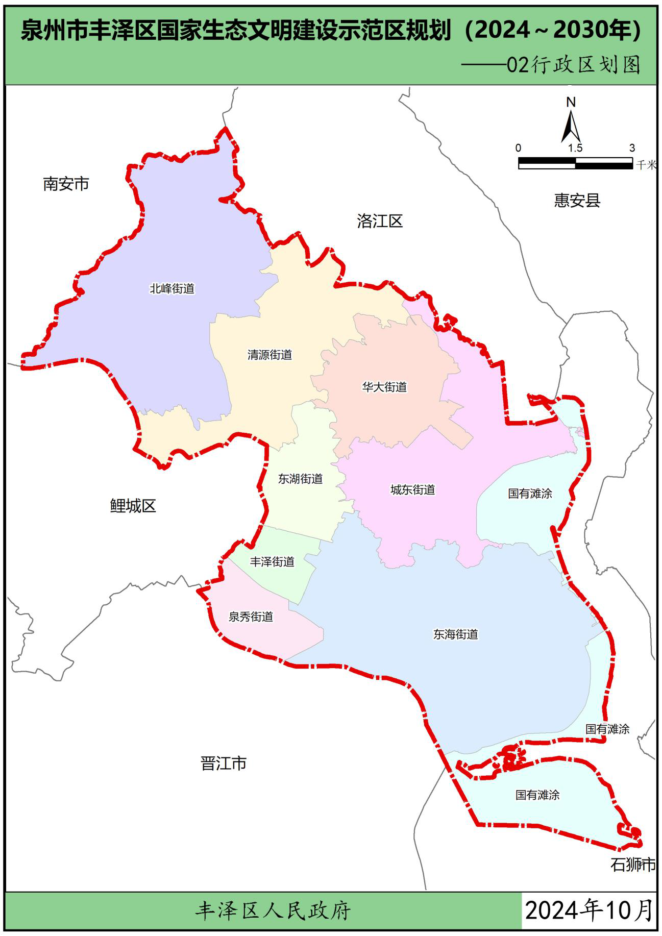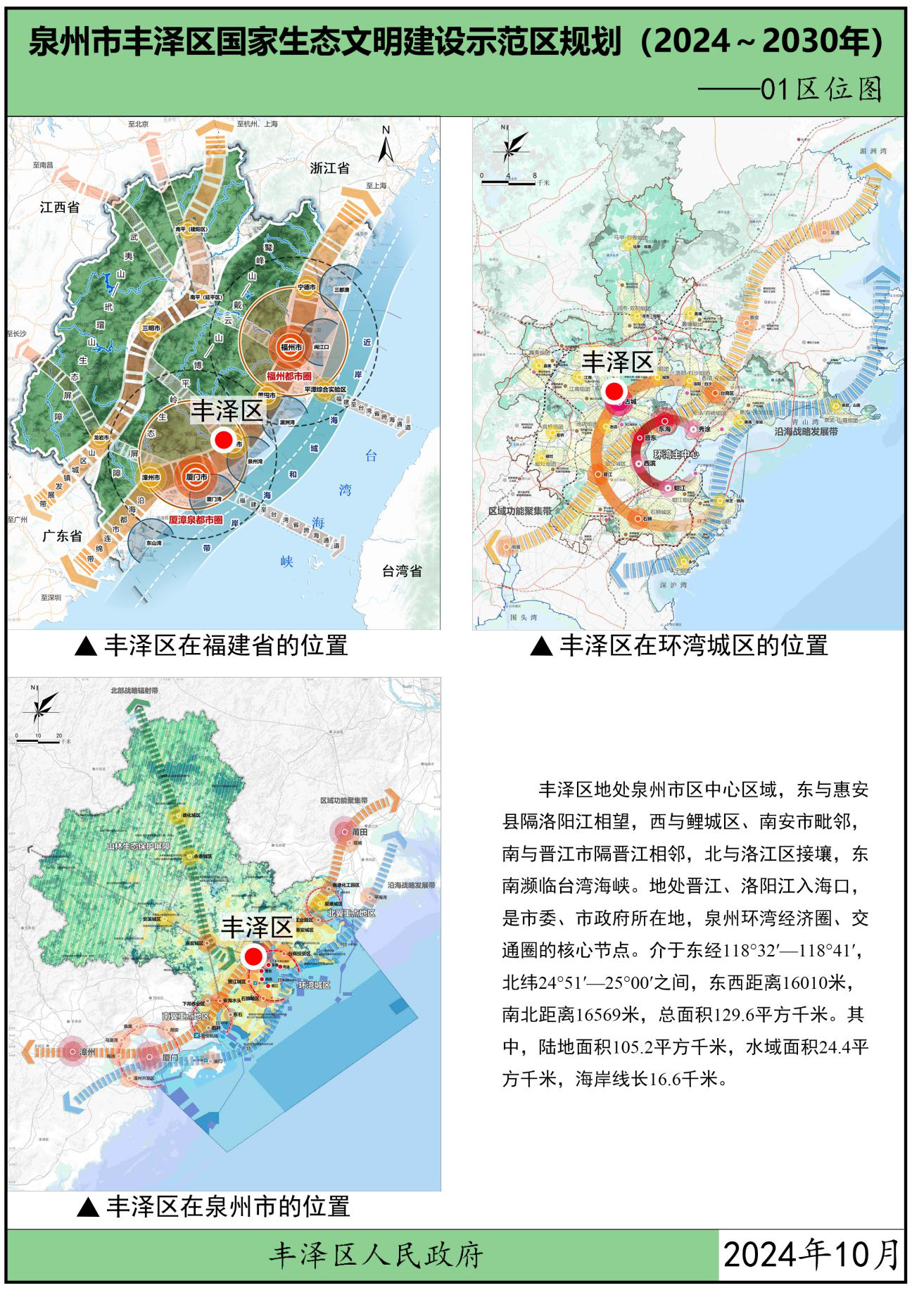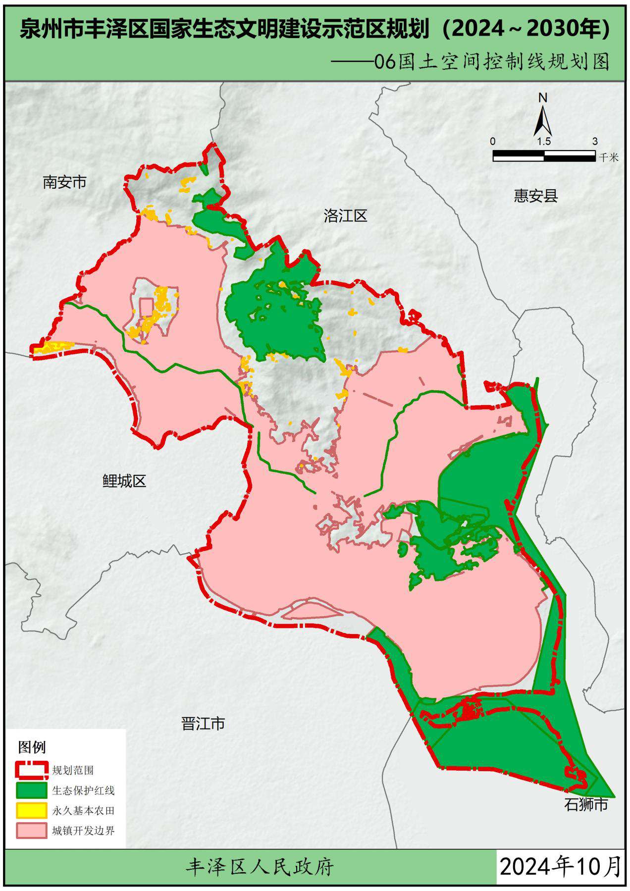为贯彻党中央、国务院关于生态文明建设的战略部署,按照中华人民共和国生态环境部办公厅关于印发《国家生态文明建设示范区规划编制指南(试行)》的通知(环办生态函〔2021〕146号)以及关于印发《生态文明建设示范区(市)建设指标》《生态文明建设示范区(县)建设指标》《生态文明建设示范区管理规程》《“绿水青山就是金山银山”实践创新基地建设管理规程》的通知(环办生态〔2024〕4号)要求,在葡京娱乐场 委、区政府领导下,结合福建省、泉州市市生态文明建设工作实践及要求,立足葡京娱乐场 自身优势,葡京娱乐场 组织编制了《葡京娱乐场 生态文明建设示范区规划(2024~2030年)》(以下简称“规划”),规划围绕目标责任、生态安全、生态经济、生态文化、生态文明制度5大方面,制定了主要任务及重点工程。本规划是指导各街道各部门分类有序地把葡京娱乐场 建设成为生态优良、环境优美、发展优质的生态文明建设示范区的重要依据。规划基准年为2023年,规划期为2024-2030年。